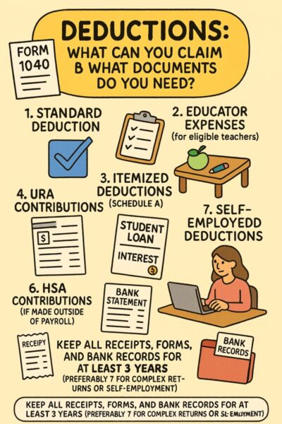๐งพ Form 1040 – Deductions: What Can You Claim & What Documents Do You Need?